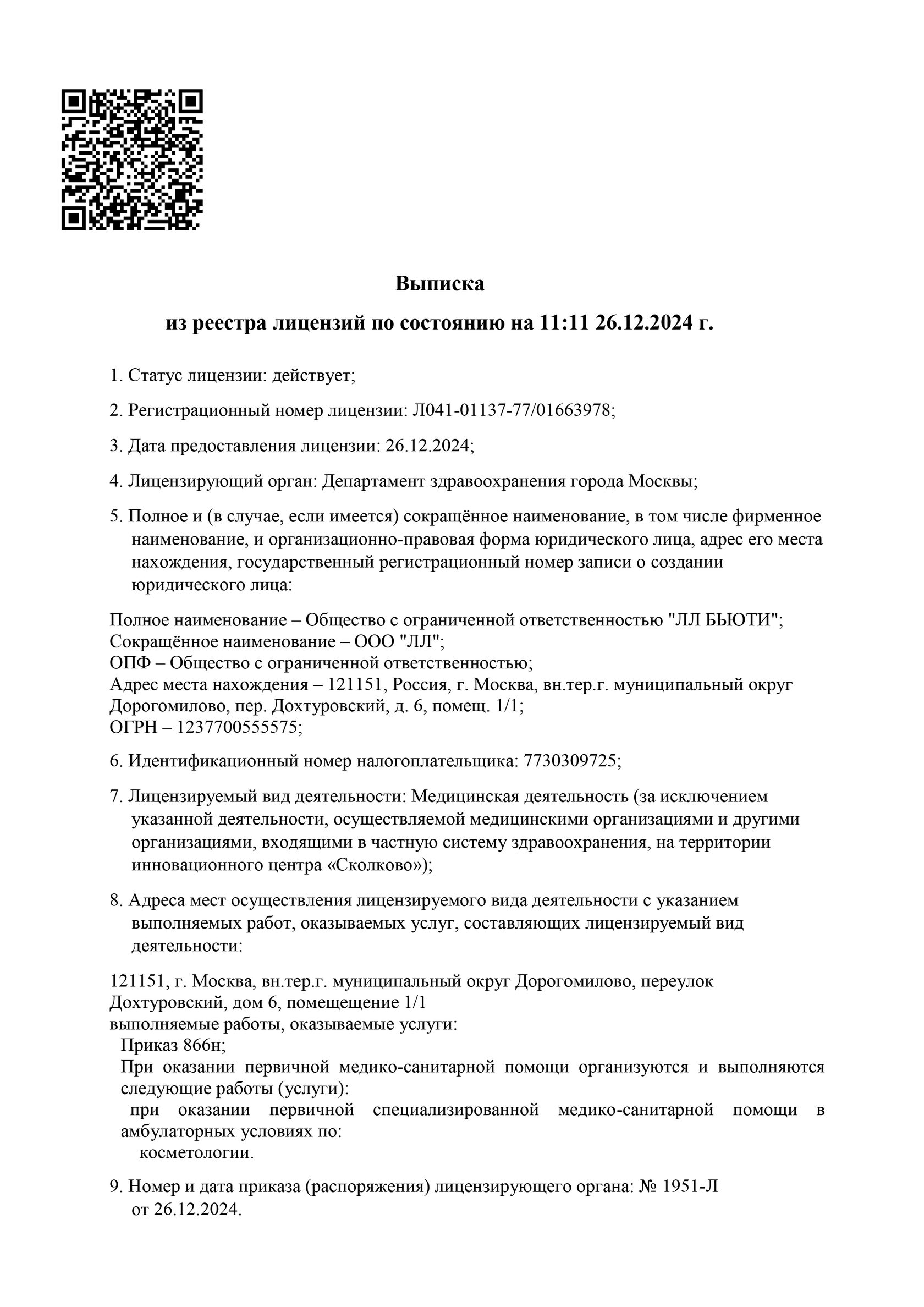 Выписка из реестра лицензий